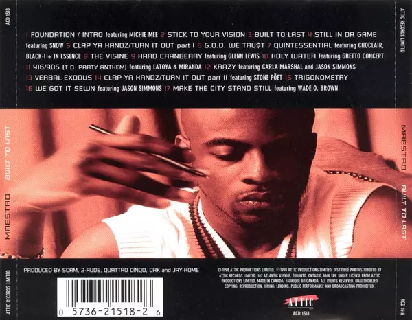 Maestro Fresh Wes: Built To Last versie op CD in standaard editie. Deze specifieke uitgave werd uitgebracht in Canada bij uitgeverij Attic op 8. december 1998. Album kan worden geclassificeerd als genre Hip Hop.