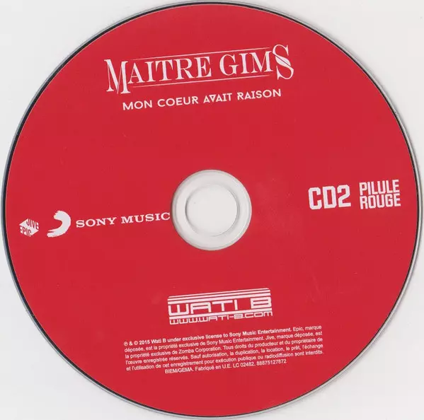 Maitre Gims: Mon Coeur Avait Raison versie op 2CD in standaard editie. Deze specifieke uitgave werd uitgebracht in Europa bij uitgeverij Sony Music in samenwerking met Jive/Epic op 4. september 2015.