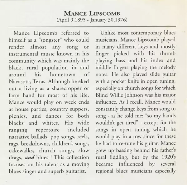 | Artiest | Mance Lipscomb |