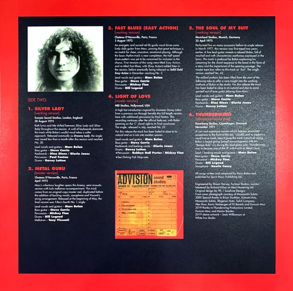 Bass Guitar Steve Currie | Drums David Lutton | Keyboards, Backing Band Gloria Jones | Lead Vocals, Guitar Marc Bolan | Percussion Bobbye Hall Porter, Mickey Finn (3)