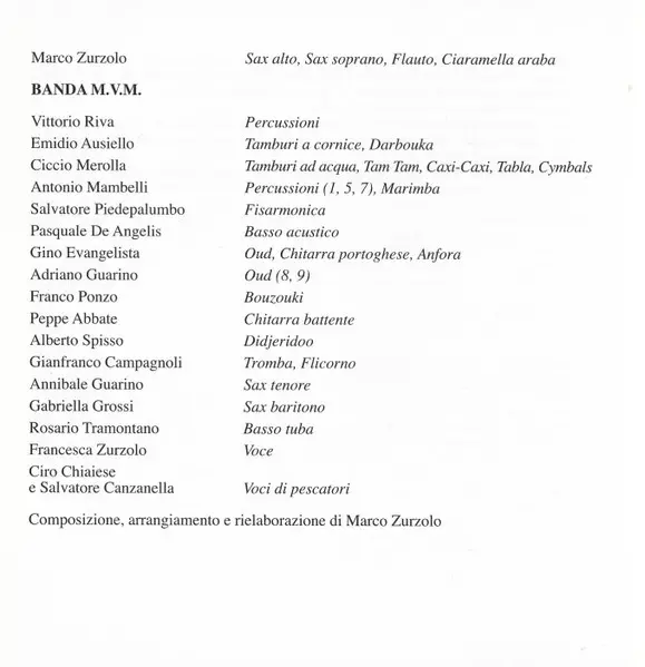 | Artiest | Marco Zurzolo | Banda M.V.M. |