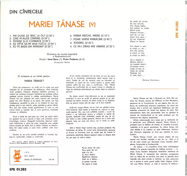 | Artiest | Maria Tănase |