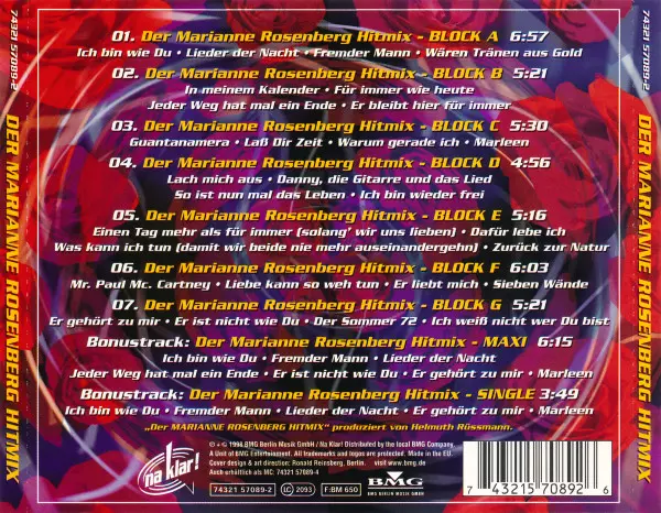 | Der Marianne Rosenberg Hitmix - Single | 3:49 min |