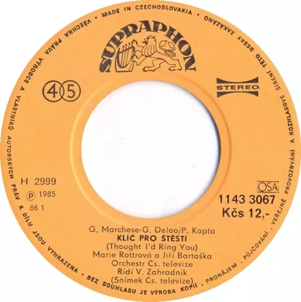 | Conductor Václav Zahradník | Lyrics By [Czech] Pavel Kopta | Orchestra Orchestr Československé Televize | Vocals Jiří Bartoška, Marie Rottrová | Written-By Giuseppe Marchese, Guy Delo | |||