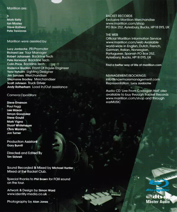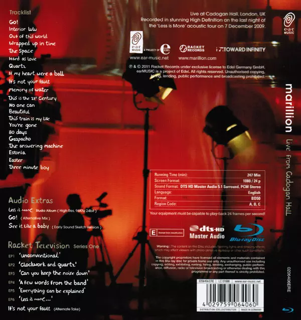 Marillion: Live From Cadogan Hall versie op Blu-ray in standaard editie. Deze specifieke uitgave werd uitgebracht in Duitsland bij uitgeverij Ear Music in samenwerking met Racket Records (2) en Toward Infinity op 5. april 2011.