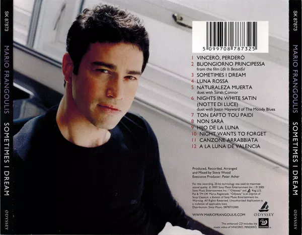Mario Frangoulis: Sometimes I Dream versie op CD in standaard editie. Deze specifieke uitgave werd uitgebracht in Europa bij uitgeverij Odyssey op 30. september 2002. Album valt binnen het genre Pop, Klassieke muziek, Folk, World, & Country, Elektronische muziek en Vocaal.
