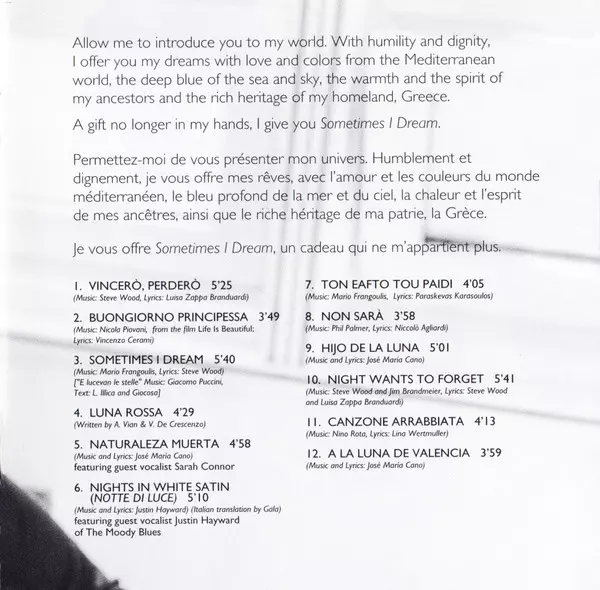 Bass Alan Deremo | Featuring, Woodwind [Woodwinds] Θύμιος Παπαδόπουλος | Guitar Ardeshir Farah, Jorge Strunz | Lyrics By Steve Wood (2) | Music By Mario Frangoulis | Music By [Verse "E Lucevan Le Stelle"] Giacomo Puccini | Overdubbed By [Drum Overdubs] Nate Wood | Text By [Verse "E Lucevan Le Stelle"] Giuseppe Giacosa, Luigi Illica