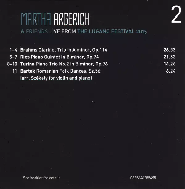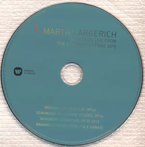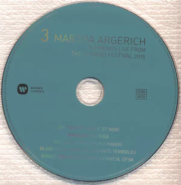 Martha Argerich And Friends: Live From Lugano 2015 versie op 3CD/Doos in standaard editie. Deze specifieke uitgave werd uitgebracht in Europa bij uitgeverij Warner Classics op 27. mei 2016. Album valt binnen het genre Klassieke muziek, Modernism, Romance en Impressionistic.