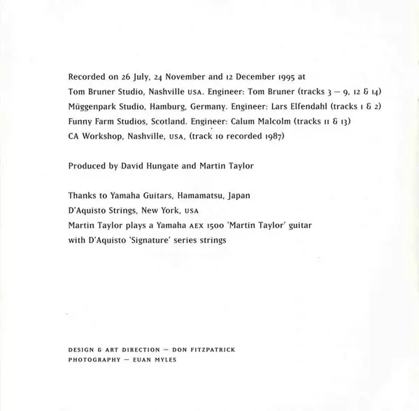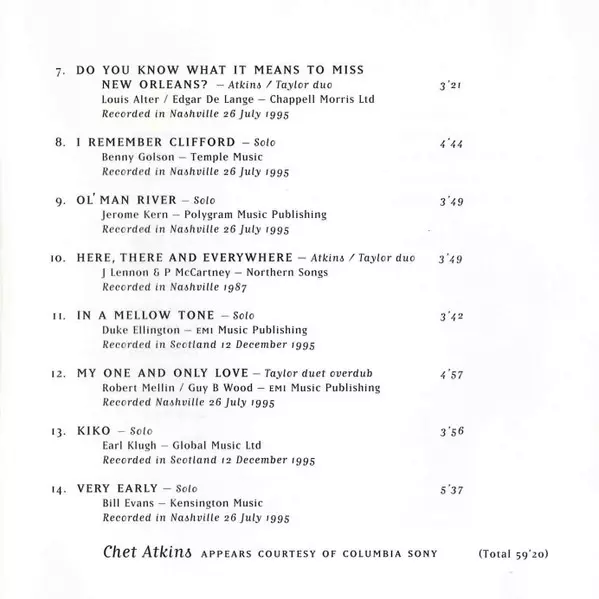 | Artiest | Chet Atkins | Martin Taylor |