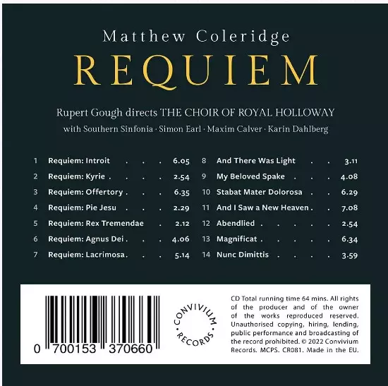 | Artiest | Royal Holloway Choir | Rupert Gough | Southern Sinfonia | Matthew Coleridge |