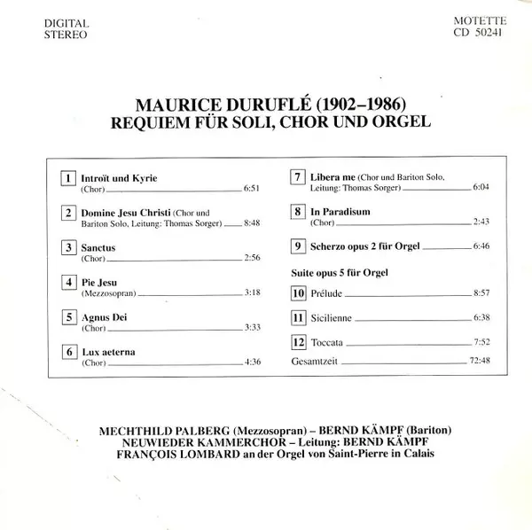 | Artiest | Maurice Duruflé | Francois Lombard | Mechthild Palberg | Bernd Kämpf | Neuwieder Kammerchor |