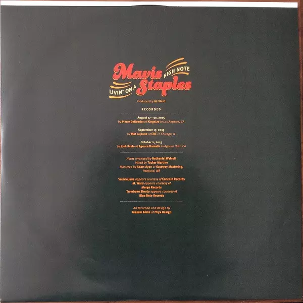 Mavis Staples: Livin' On A High Note versie op vinyl LP in standaard editie. Deze specifieke uitgave werd uitgebracht in VS bij uitgeverij Anti- op 1. april 2016. Album valt binnen het genre Rock, Funk / Soul, Rhythm & Blues en Soul.