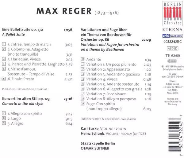 | Artiest | Staatskapelle Berlin | Max Reger | Otmar Suitner |