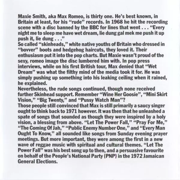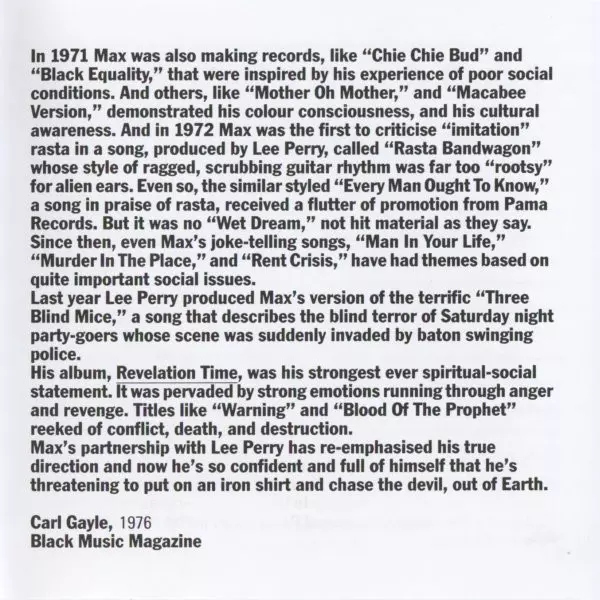 | Artiest | The Upsetters | Max Romeo |