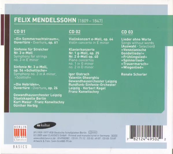 Artiest | Felix Mendelssohn-Bartholdy |