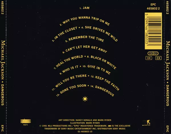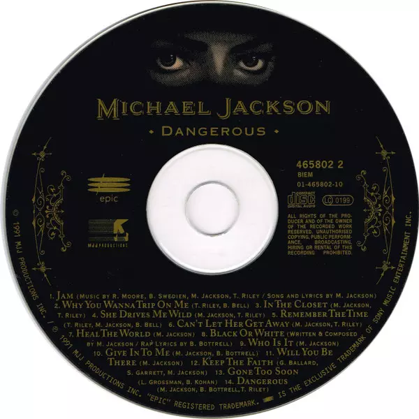 Michael Jackson: Dangerous versie op CD in standaard editie. Deze specifieke uitgave werd uitgebracht in Europa bij uitgeverij Epic in samenwerking met MJJ Productions in het jaar 1991.