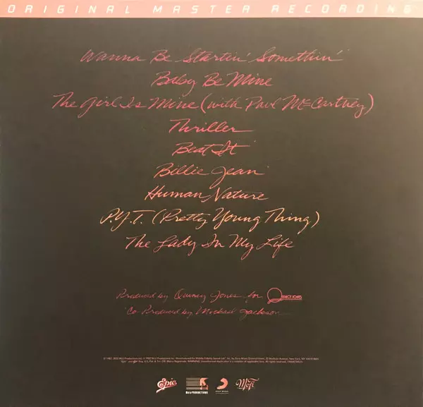Michael Jackson: Thriller LTD | NUM versie op vinyl LP in limited individueel genummerd remastered editie. Deze specifieke uitgave werd uitgebracht in VS bij uitgeverij Mobile Fidelity Sound Lab in samenwerking met Epic en MJJ Productions op 25. november 2022.