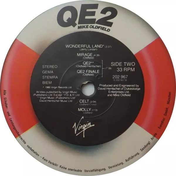 Mike Oldfield: QE2 versie op vinyl LP in standaard editie. Deze specifieke uitgave werd uitgebracht in Europa bij uitgeverij Virgin in het jaar 1981. Album valt binnen het genre Rock, Pop, Progressive rock, Pop Rock, Art Rock en New Age.