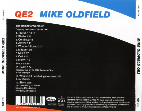 Mike Oldfield's sixth album from October 1980 contains his 2 most popular instrumentals, QE2 and Taurus, as well as cover versions of the Shadows' Wonderful Land and, surprisingly, Abba's Arrival. THE REMASTERED REISSUE