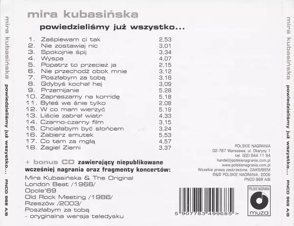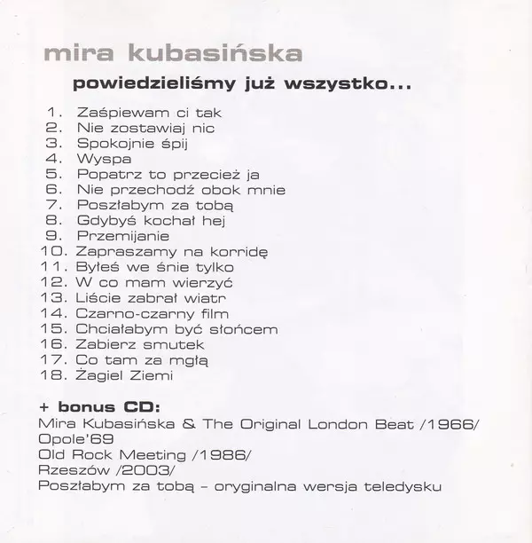 | Artiest | Mira Kubasińska |