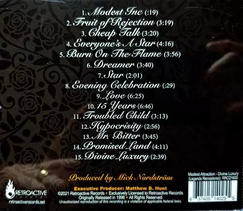 Modest Attraction: Divine Luxury versie op CD in remastered editie. Deze specifieke uitgave werd uitgebracht in VS bij uitgeverij Retroactive Records op 3. februari 2023. Album valt binnen het genre Rock en Hard Rock.