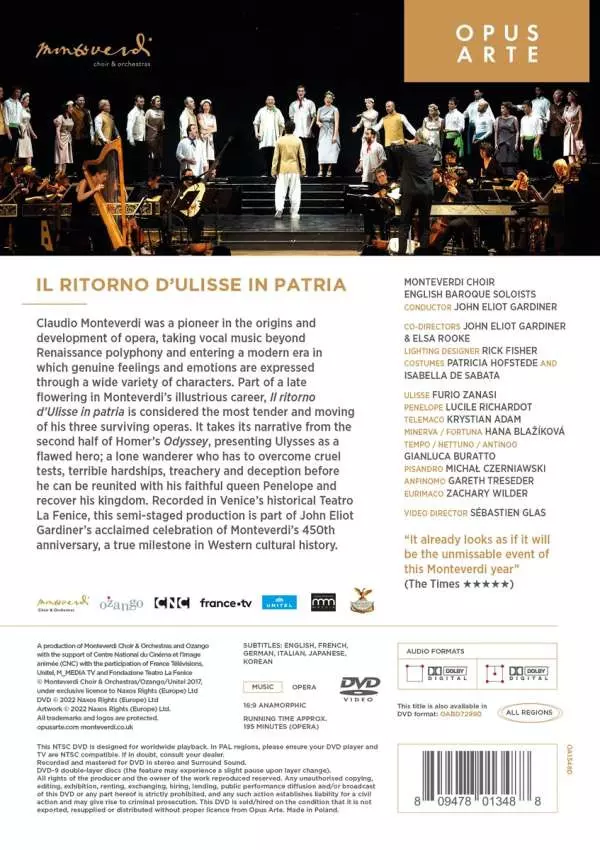 Claudio Monteverdi: Il Ritorno D'Ulisse In Patria versie op DVD in standaard editie. Deze specifieke uitgave werd uitgebracht in Europa, VK en VS bij uitgeverij Opus Arte op 26. augustus 2022. Album valt binnen het genre Klassieke muziek, Barokmuziek, Opera en Renaissance Music.