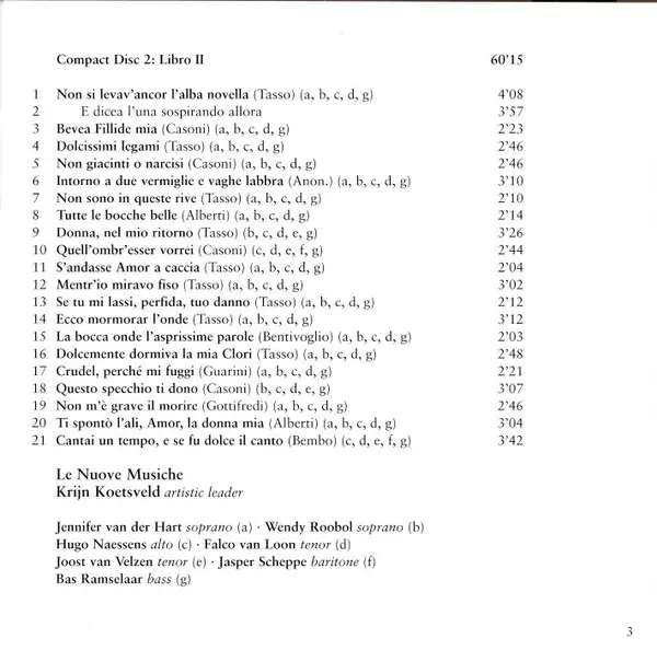 | Artiest | Claudio Monteverdi | Krijn Koetsveld | Le Nuove Musiche |