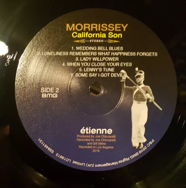 Morrissey: California Son versie op vinyl LP in standaard editie. Deze specifieke uitgave werd uitgebracht in Europa en VS bij uitgeverij Étienne op 24. mei 2019.