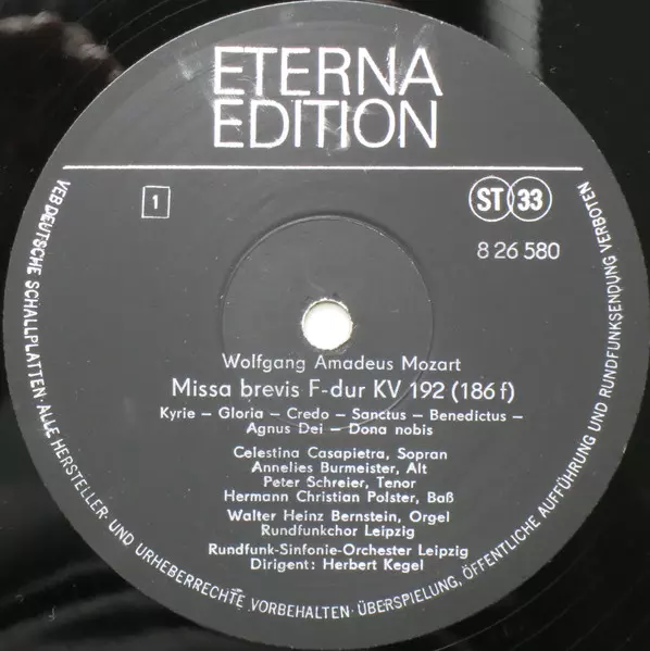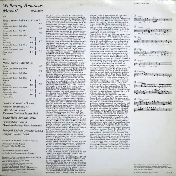 Artiest | Wolfgang Amadeus Mozart | Peter Schreier | Rundfunkchor Leipzig | Annelies Burmeister | Hermann Christian Polster | Herbert Kegel | Rundfunk-Sinfonie-Orchester Leipzig | Celestina Casapietra |