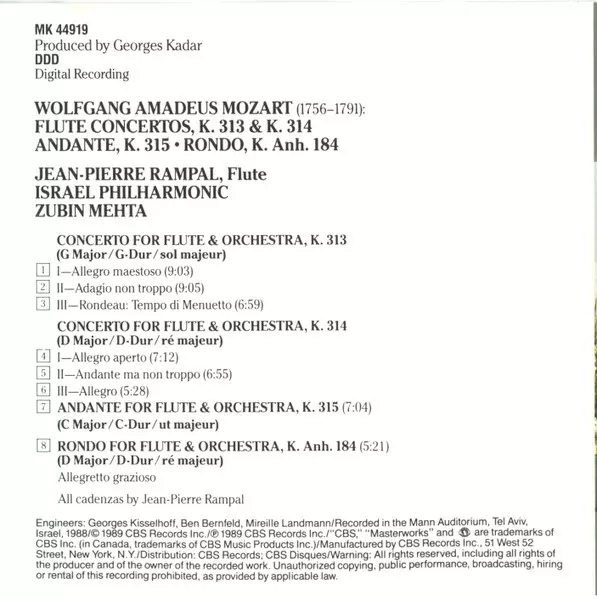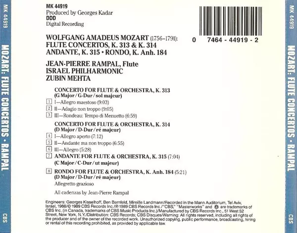 | Artiest | Wolfgang Amadeus Mozart | Zubin Mehta | Israel Philharmonic Orchestra | Jean-Pierre Rampal |