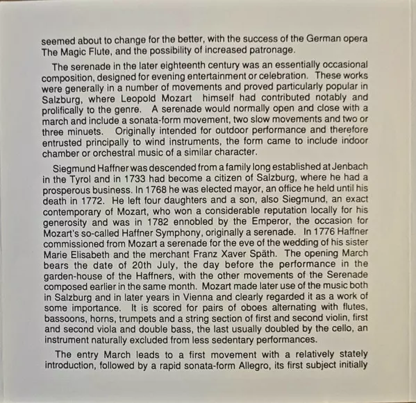 | Serenade In D Major, K. 250 "Haffner" | ||
