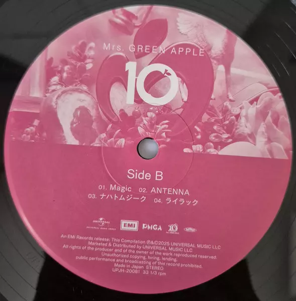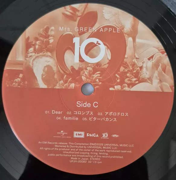 Mrs. Green Apple: 10 LTD versie op vinyl 2LP in limited editie. Deze specifieke uitgave werd uitgebracht in Japan bij uitgeverij EMI op 12. december 2025. Album valt binnen het genre Rock, Pop, Beat, Pop Rock, J-Rock en J-pop.