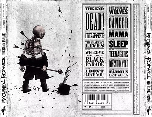 "The Black Parade" je třetí album rockové kapely z Belleville/New Jersey. V prvním týdnu se ho celosvětově prodalo přes 300 000 kopií. Úspěch koncepčního alba The Black Parade byl tak velký, že My Chemical Romance postavili svou hudbu na zastřešujícím příběhu i na následném albu, vynikajícím a nedoceněném Danger Days z roku 2010: The True Lives...