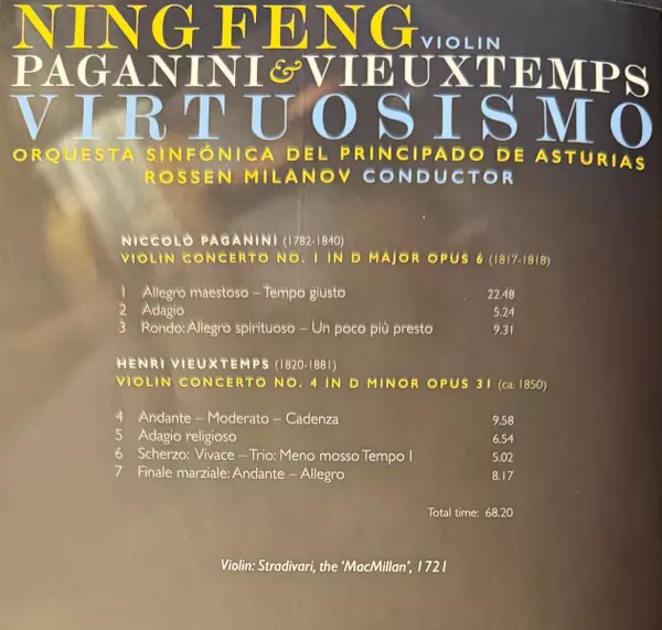 | Artiest | Niccolò Paganini | Henri Vieuxtemps | Orquesta Sinfónica Del Principado de Asturias | Ning Feng | Rossen Milanov |