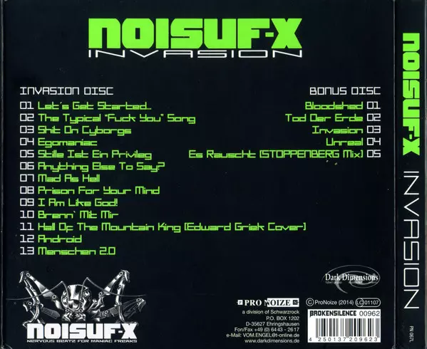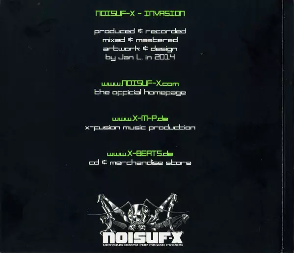 An apocalyptic and fearful view of the world is what Noisuf-X, the side-project of X-Fusion, is dealing with. It describes a cold and hopeless atmosphere musically with harsh distorted beats, experimental sounds and pushing sequences. The recurrent soundstructures and its simple mo...
