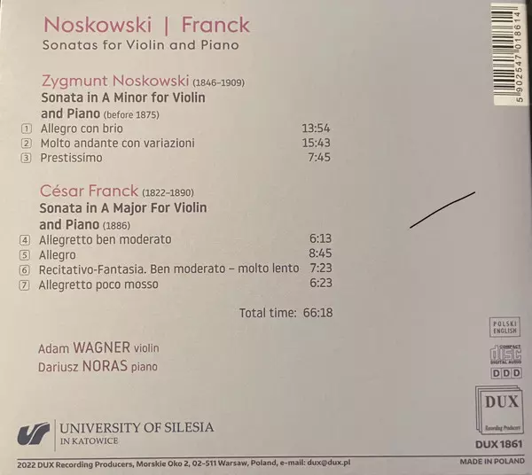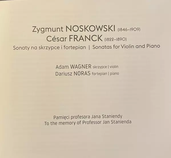 | Artiest | César Franck | Zygmunt Noskowski | Adam Wagner | Dariusz Noras |