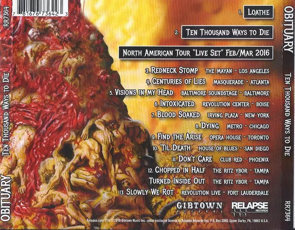 Legendary death metallers Obituary from Tampa, Florida are back with a great EP. This thirteen-track CD features two brand new studio songs as well as a "Live Set" from the North American tour with a total of eleven live songs from eleven US cities recorded during the highly successful "Inked In Blood" tour. These recordings prove that Obituary ...