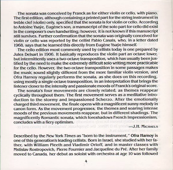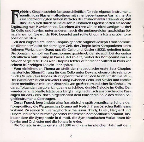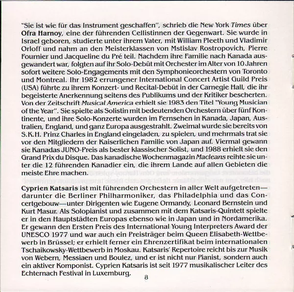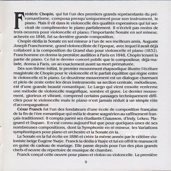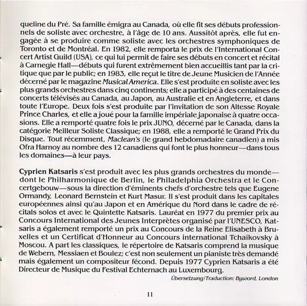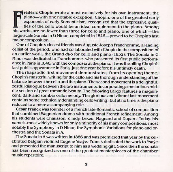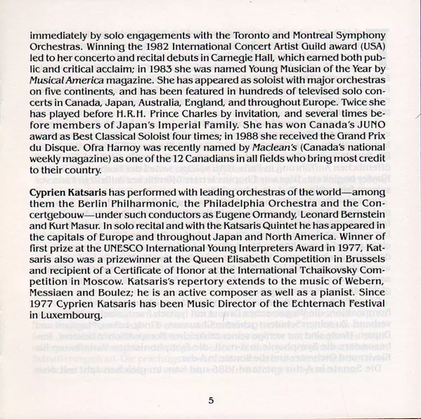 | Artiest | Frédéric Chopin | César Franck | Cyprien Katsaris | Ofra Harnoy |