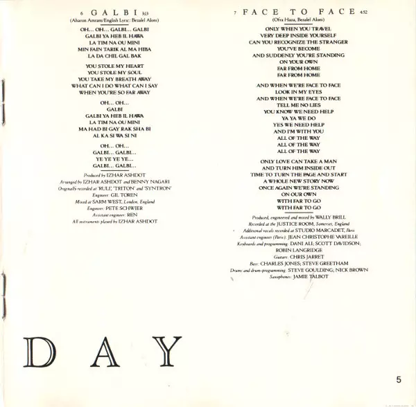 Bass Charlie Jones, Steve Greetham | Drums, Drum Programming Nick Brown, Steve Goulding | Engineer [Assistant Engineer, Paris] Jean-Christophe Vareille | Engineer, Mixed By Wally Brill | Guitar Christopher Jarrett | Keyboards, Programmed By Dani Ali, Robin Langridge, Scott Davidson | Saxophone Jamie Talbot | Translated By [English Translation] Keren Barak | Written-By Ofra Haza