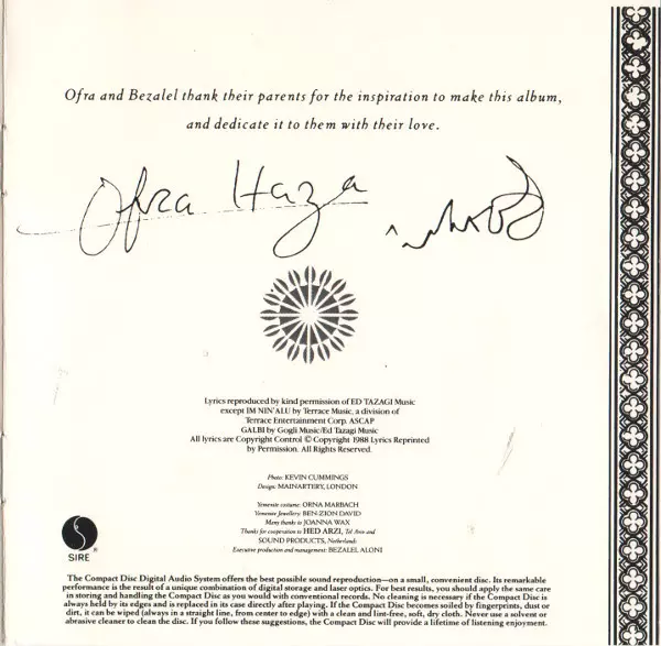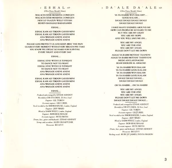 Arranged By Izhar Ashdot | Drums, Bass, Guitar, Keyboards Izhar Ashdot | Engineer [Assistant Engineer, Db Studios] Gili Uriel | Engineer [Assistant Engineer, Sarm West] Pete Frith | Engineer [Db Studios] Gil Toren | Engineer [Sarm West] Bob Kraushaar | Engineer [Smokehouse] Jeff Ward (2) | Percussion Iki Levy | Saxophone, Flute, Clarinet Gilad Atzmon | Written-By Bezalel Aloni, Ofra Haza