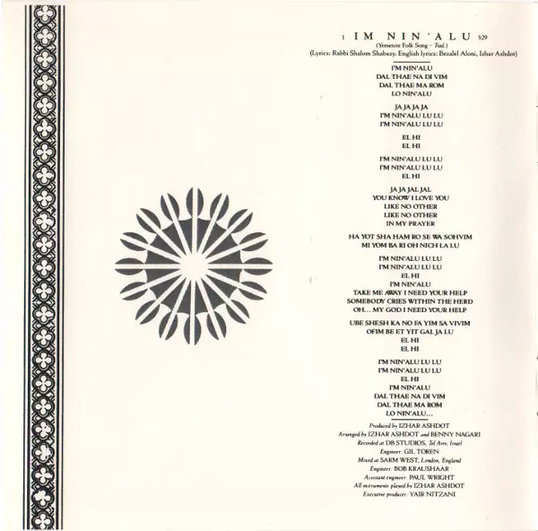 Arranged By Benny Nagari, Izhar Ashdot | Engineer [Assistant, Sarm West] Paul Wright | Engineer [Db Studios] Gil Toren | Engineer [Sarm West] Bob Kraushaar | Executive-Producer Yair Nitzani | Instruments [All Instruments Played By] Izhar Ashdot | Lyrics By Shalom Ben Yosef Shabazi | Lyrics By [English Lyrics] Bezalel Aloni, Izhar Ashdot | Music By [Yemenite Folk Song] Traditional