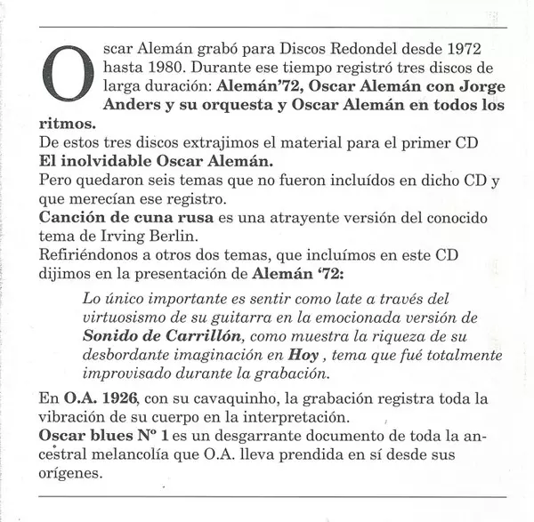 | Artiest | Oscar Aleman |