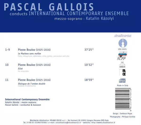 | Artiest | Pierre Boulez | Pascal Gallois | International Contemporary Ensemble | Katalin Károlyi |