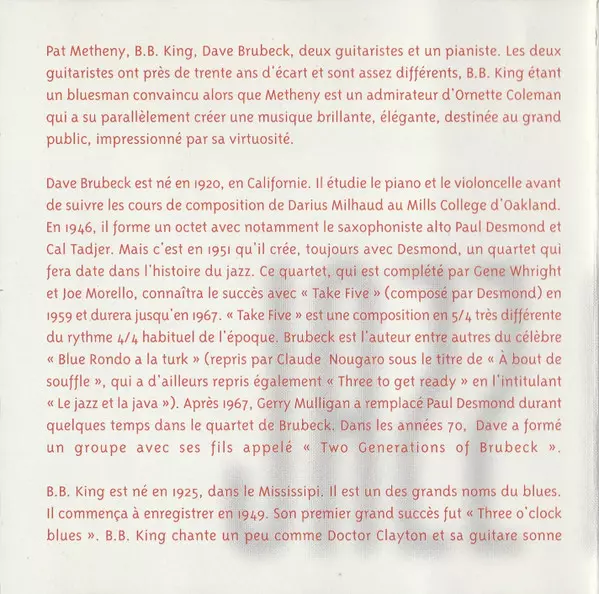 | 1 | Dave Brubeck, B.B. King, Pat Metheny: Introduction | 0:49 min | |