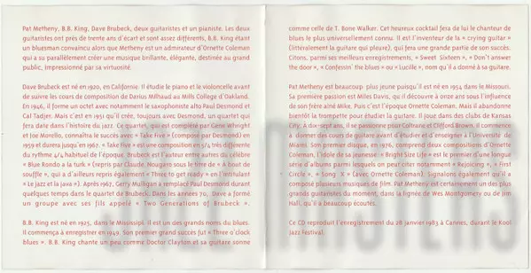 | Artiest | The Dave Brubeck Quartet | B.B. King | Pat Metheny | The Heath Brothers |