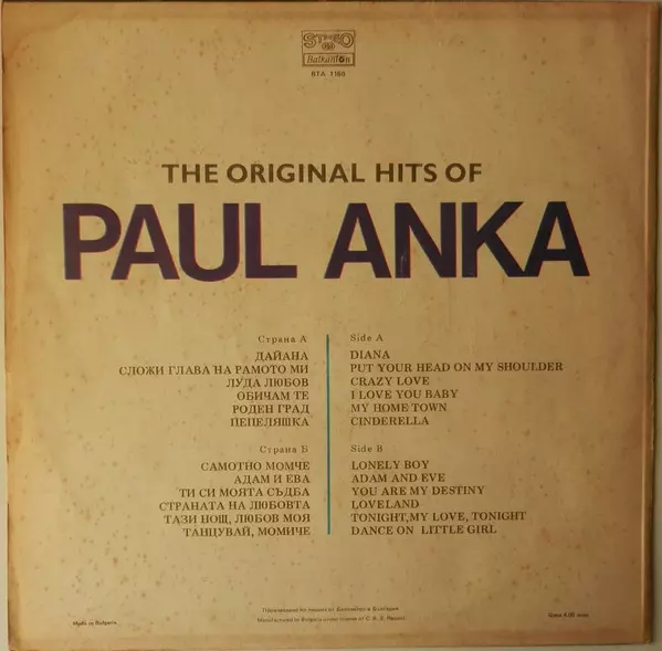 The Original Hits Of Paul Anka - LP