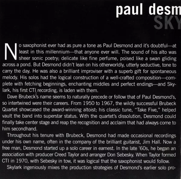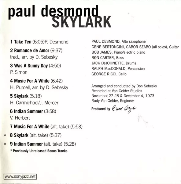 | Artiest | Paul Desmond | Gabor Szabo |