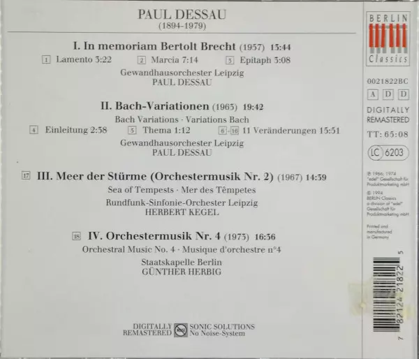 | Artiest | Gewandhausorchester Leipzig | Staatskapelle Berlin | Herbert Kegel | Rundfunk-Sinfonie-Orchester Leipzig | Günther Herbig | Paul Dessau |