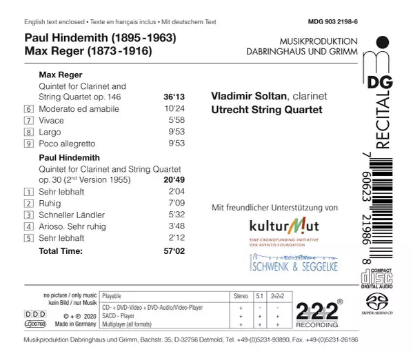 | Artiest | Paul Hindemith | Max Reger | Utrecht String Quartet | Vladimir Soltan |