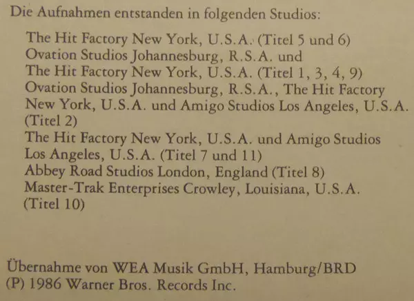 Bass Bakithi Kumalo | Drums Isaac Mtshali | Guitar Adrian Belew, Ray Phiri | Guitar, Vocals Paul Simon | Percussion Ralph MacDonald | Vocals Linda Ronstadt